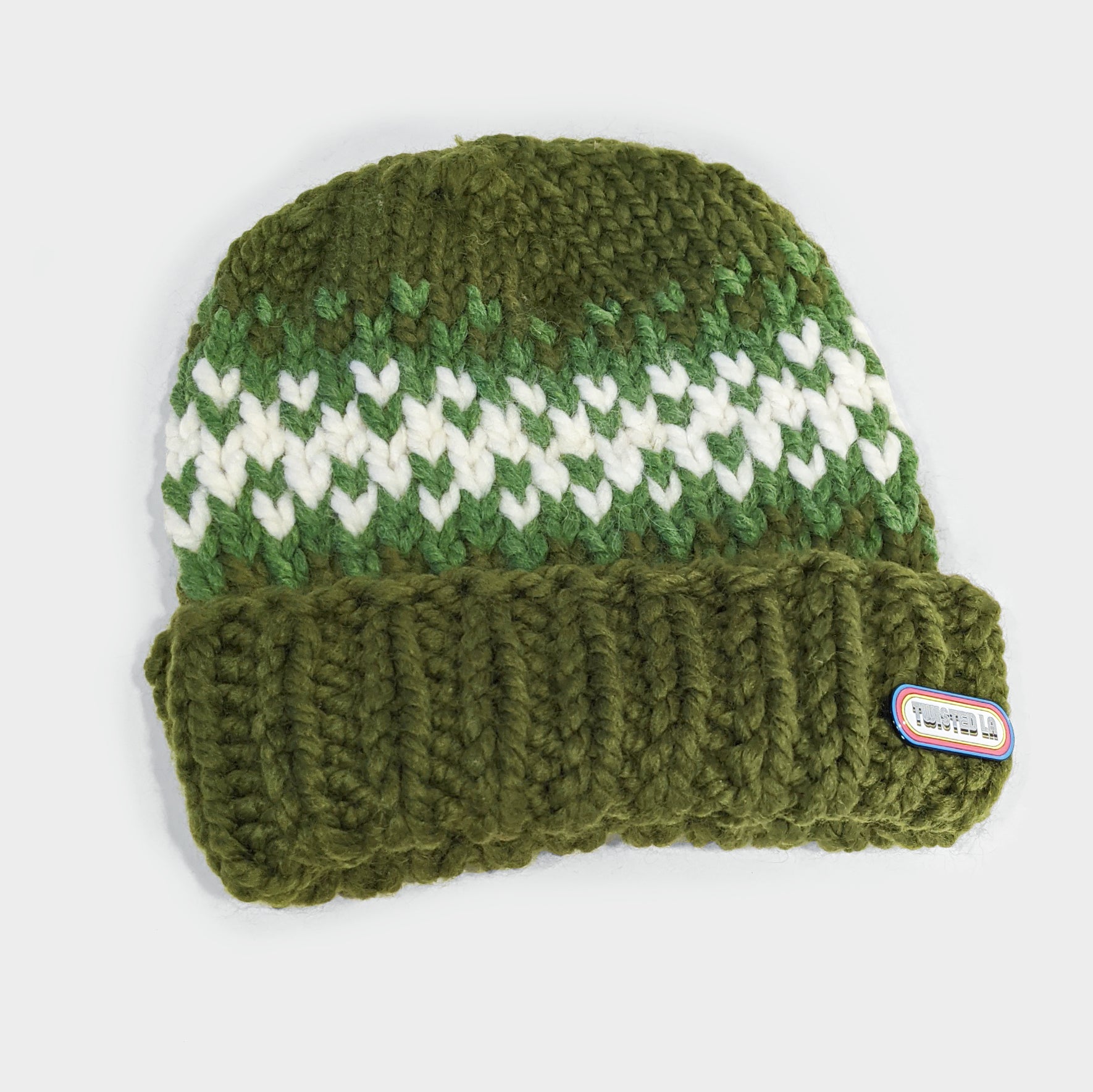 Green Fair Isle Chunky Knit Beanie